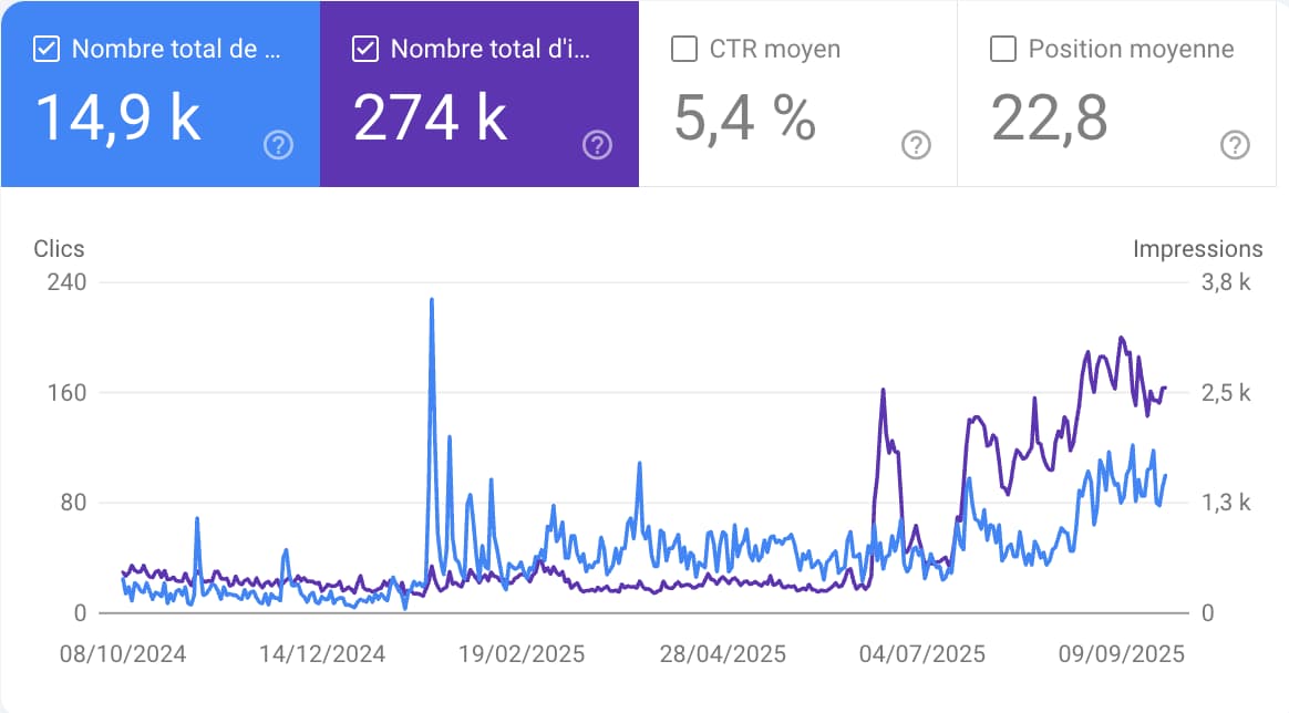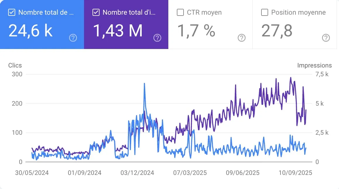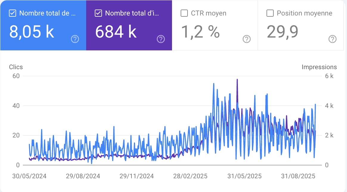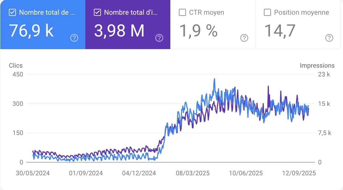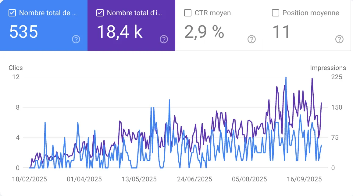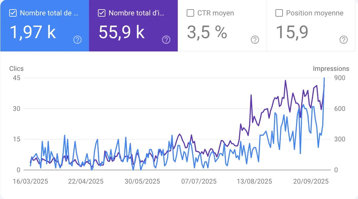 Résultat : en 30 jours, +35 % de trafic, des impressions qui explosent, et surtout un canal d’acquisition long terme qu’on possède à 100 %.