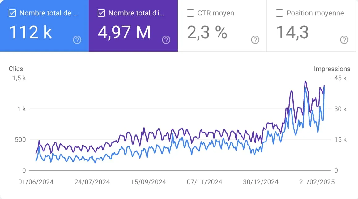 En quelques semaines, notre site a gagné des positions sur des mots-clés stratégiques, et le trafic qualifié a fortement augmenté. L’équipe est à l’écoute, réactive et très professionnelle.