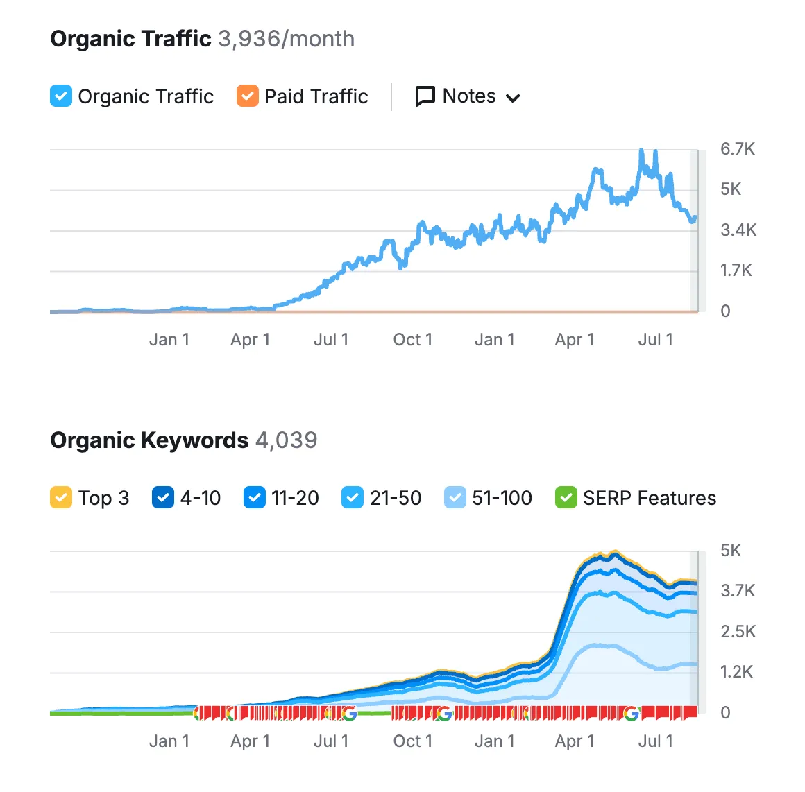 Parce qu’Ovirank a été conçu par un freelance SEO, Thibault Brannan, devenu fondateur de l’agence Oviseo (1M de visiteurs générés en 2024).